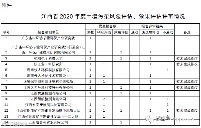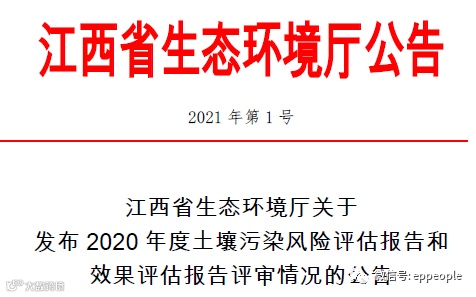 2021年第1号 江西省生态环境厅关于发布2020年度土壤污染风险评估报告和效果评估报告评审情况的公告(点击左侧链接查看下载全文)