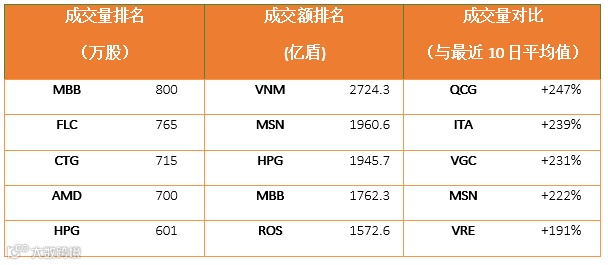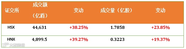 虽然市场大幅上涨但在胡志明证交所HOSE下跌股数较多,170只下跌,123只股上涨。