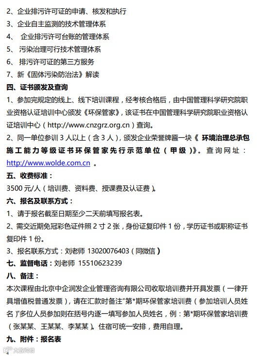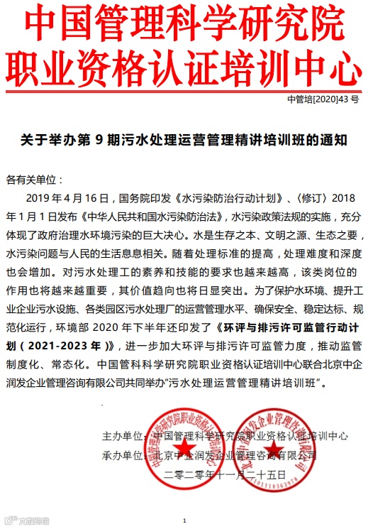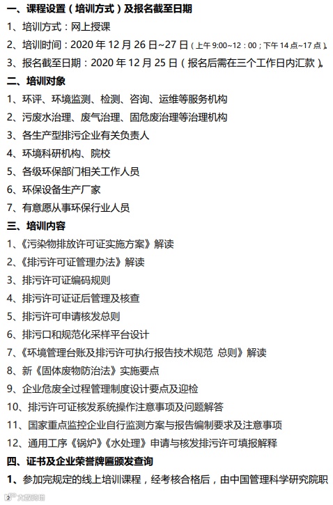 红头文件2:排污许可”一证式“管理专业化人才培训暨环境管理工程师培训班的通知