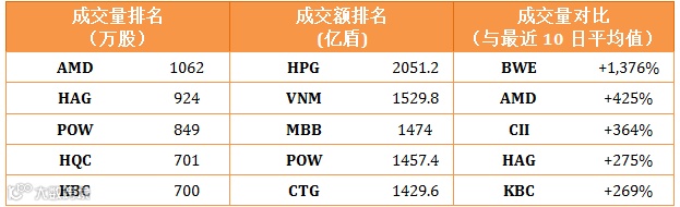 后江药品DHG,FPT科技,越南天然气GAS,和发钢铁HPG,马山集团MSN,VIN集团VIC,越南牛奶 VNM,越南天然气PLX,VINCOM零售 VRE,富润黄金PNJ,越南石油电力POW,Vinhomes地产VHM等蓝筹股大幅上涨已助推市场上扬。值得关注的是,因ETF基金可能加入POW的信息,POW大幅上涨4.5%。