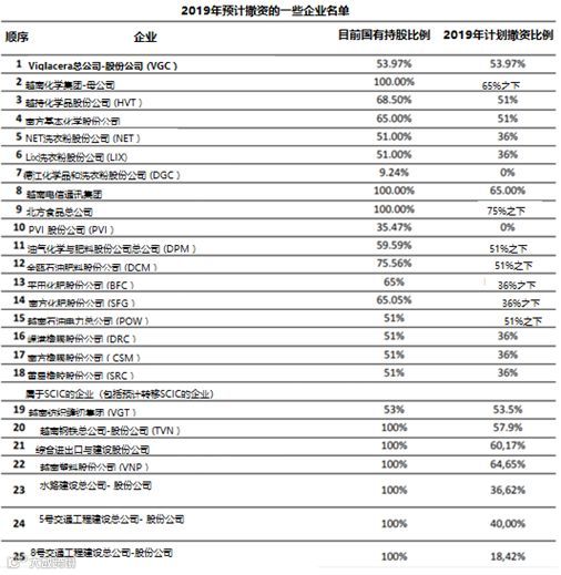 按计划,2018年有181家要进行撤资的企业,然而,2018年前9个月只有18家实现撤资,2018全年只收回12.3亿美元。一些大型企业预计将在2019年加快撤资进程并有助于减少国家预算的财务压力,包括:VEAM, DVN, VGC, ACV, DPM, DCM, SJS,PVI等。