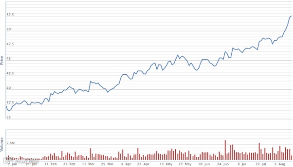 前7个月的税后利润和母公司的税后利润分别达21,140亿盾和16,880亿盾,同比增长26.8%和29.1%。每股收益EPS达2,495盾,增长28.6%。此外,利润率持续改善达17.2%(2018年上半年仅为16.4%)。