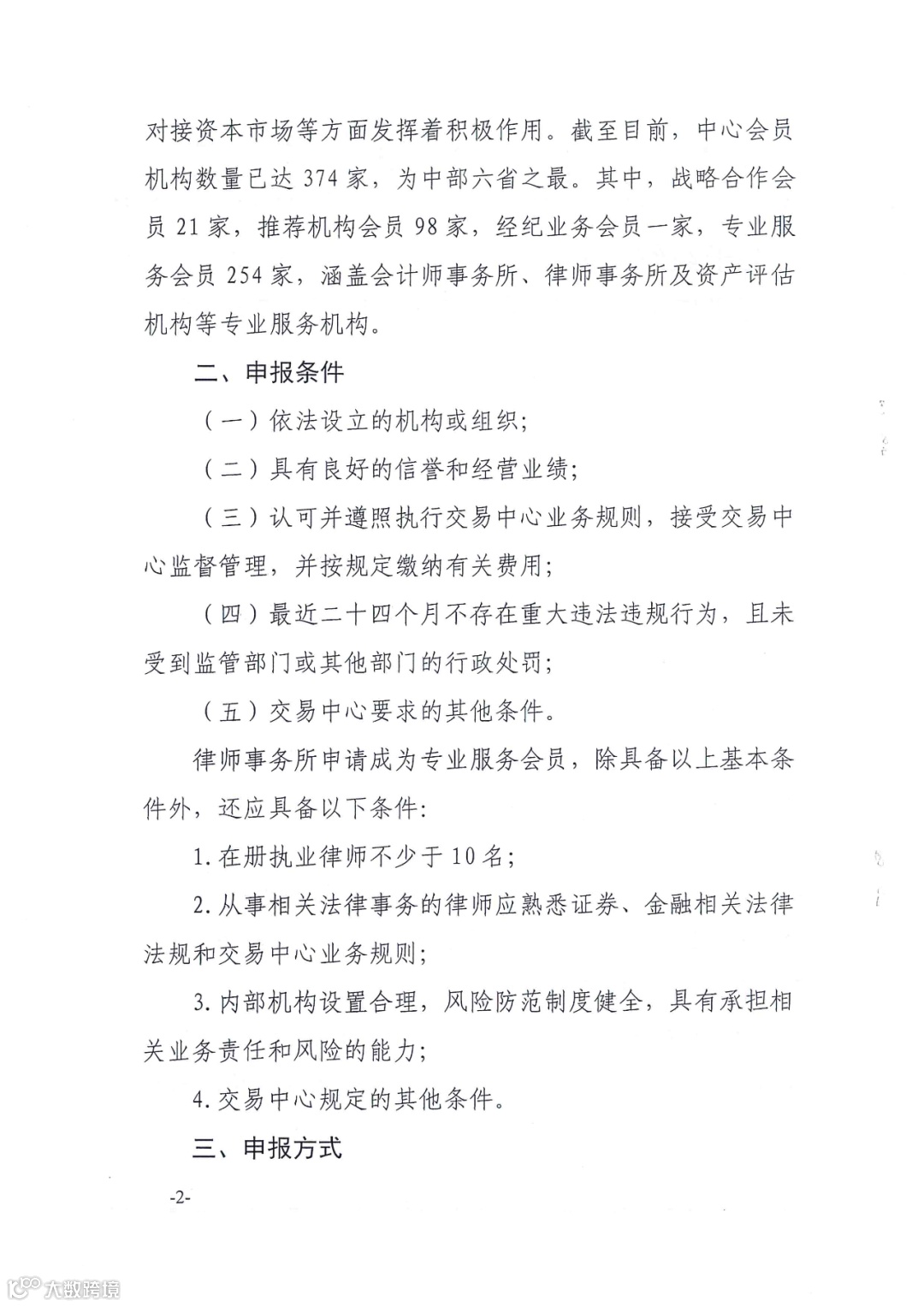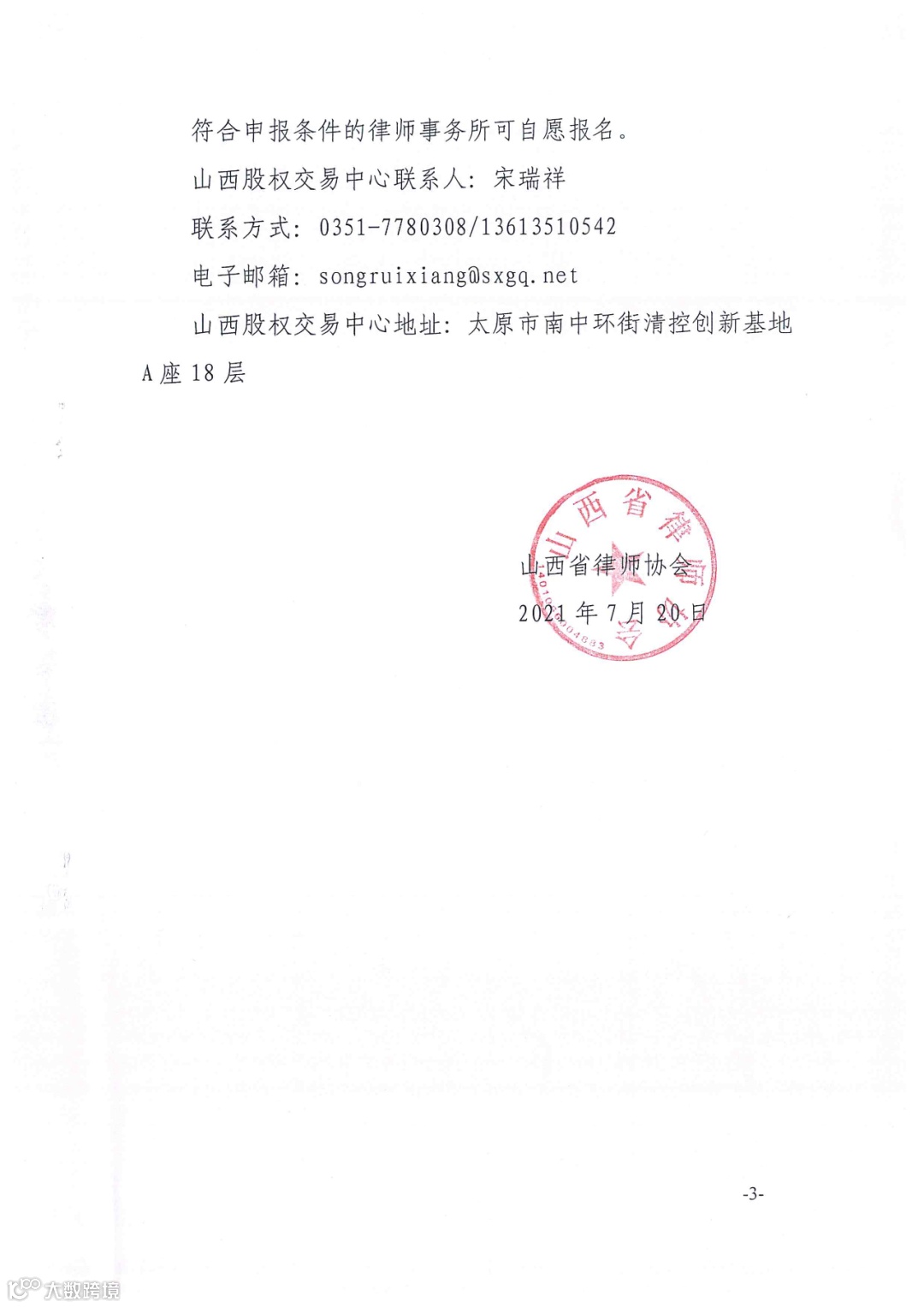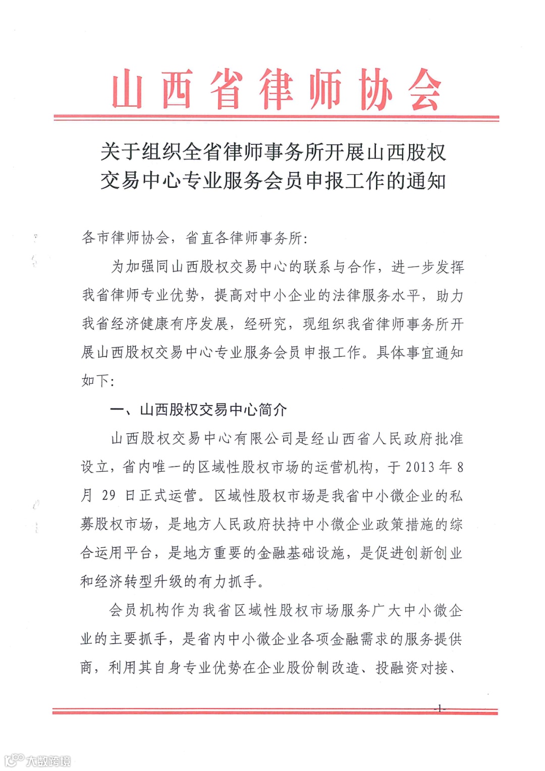 关于组织全省律师事务所开展山西股权交易中心专业服务会员申报工作的通知