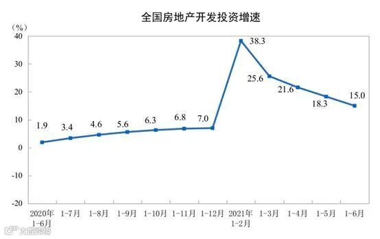 1-6月份,全国房地产开发投资72179亿元,同比增长15.0%;比2019年1—6月份增长17.2%,两年平均增长8.2%。其中,住宅投资54244亿元,增长17.0%。