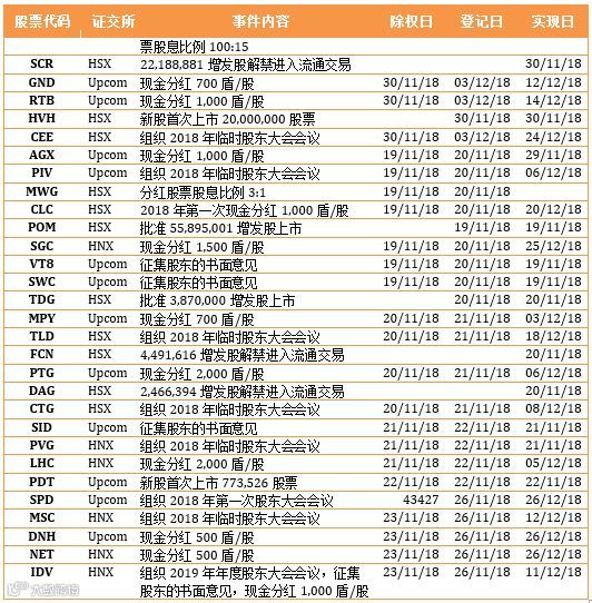 上周值得关注的是VCG在河内交易所拍卖成功,2018年11月23日VTP在Upcom交易所挂牌交易并接近涨停。