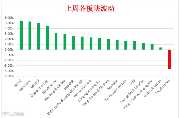 总体来看,Vin集团VIC,Vinhomes地产VHM,Vincom零售VRE,越南牛奶VNM,马山集团MSN等食品消费股以及先锋银行TPB,盛旺银行VPB等银行股恢复支撑了越南指数涨势。反之,通信的唯一板块下调,主要来自YEAH1集团YEG的跌幅。