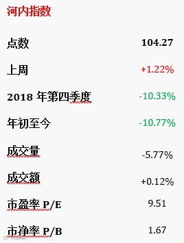 上周股市各指数一律上涨。越南指数收盘于917.97点,涨幅2.2%。河内指数收盘于104.27点,涨幅1.22%。