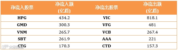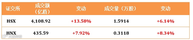 在胡志明证交所HOSE外资净流出785.4亿盾,河内证交所HNX外资净流出61.9亿盾。