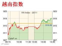 11月20日越南股市开盘下跌随后快速恢复。下午逆转回升,收盘于最高点位。