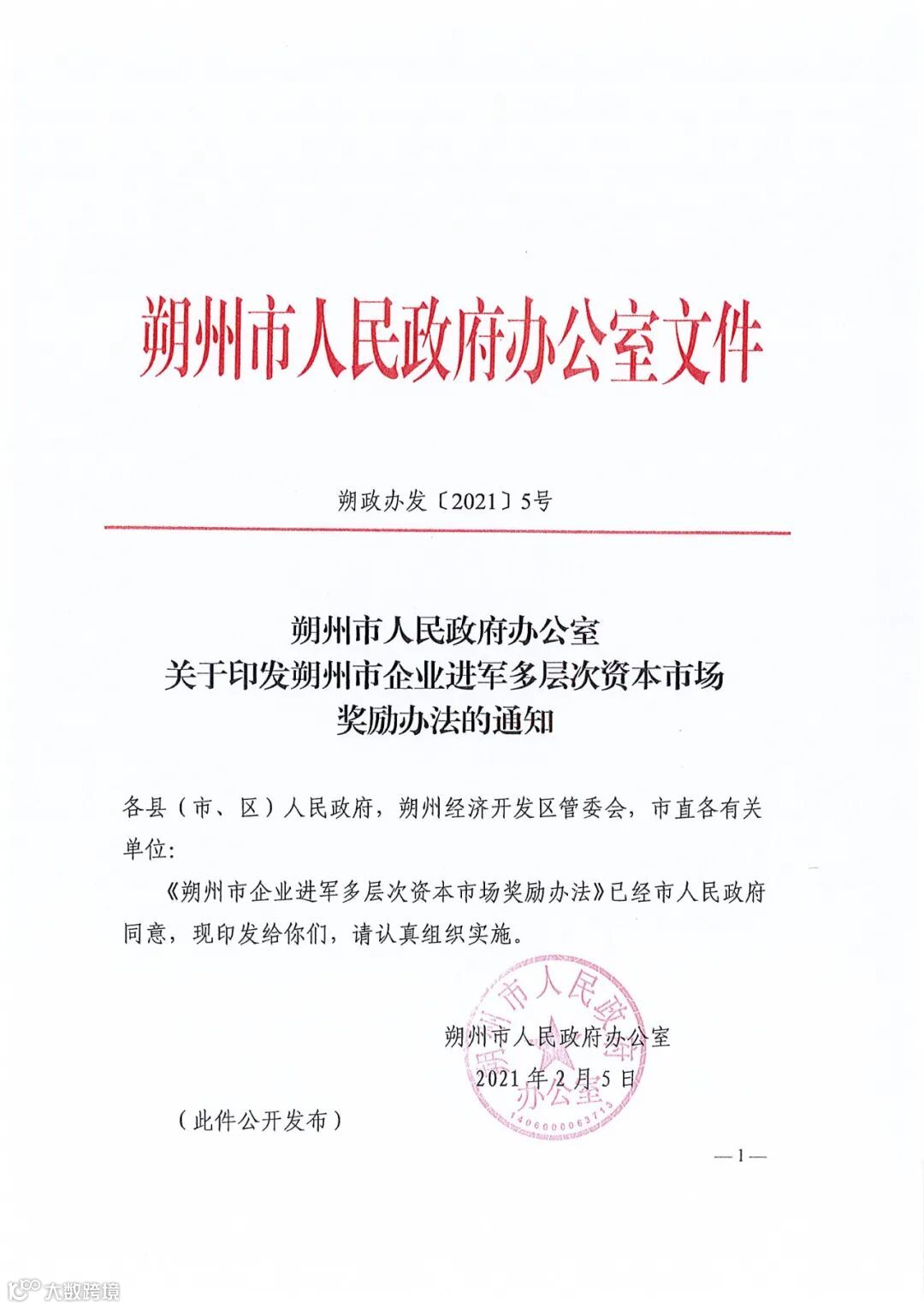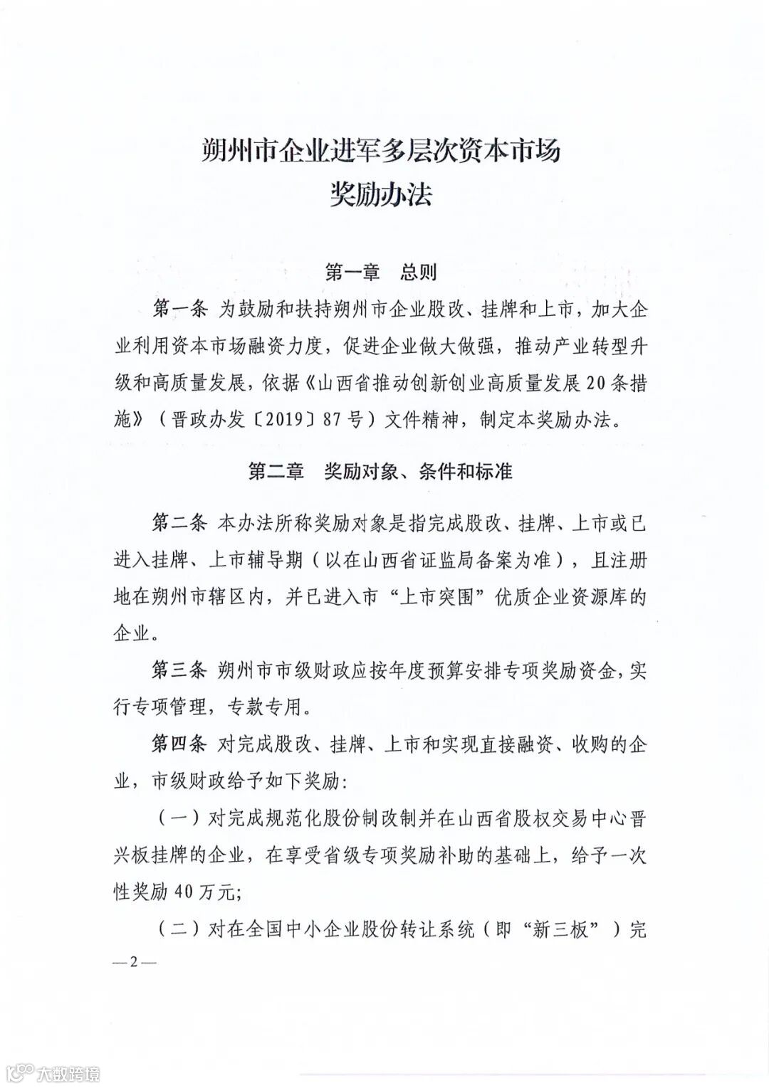 朔州市人民政府办公室关于印发朔州市企业进军多层次资本市场奖励办法的通知