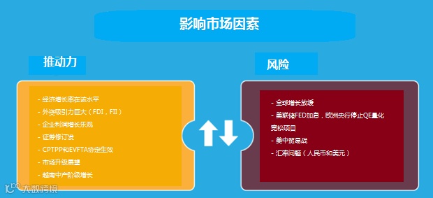 预期越南股市仍将比去年增长并在2019年底越南指数VN-Index可能将再次冲破1000点大关。支持的因素来自越南国内经济的可持续增长,企业经营活动继续蓬勃发展以及市场升级预期,证券修订法,估值吸引等其他支撑因素。