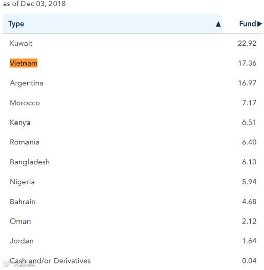 iShareMSCI Frontier 100 ETF投资组合中越南比重排第二位