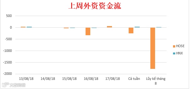 美元汇率压力,中美贸易战和土耳其的不稳情况等因素影响到投资者心理。上周流动性高于前一周,在胡志明证交所日均成交量小幅上涨自1.7997亿股升为1.8091亿股。在河内证交所大幅增长22.4%。