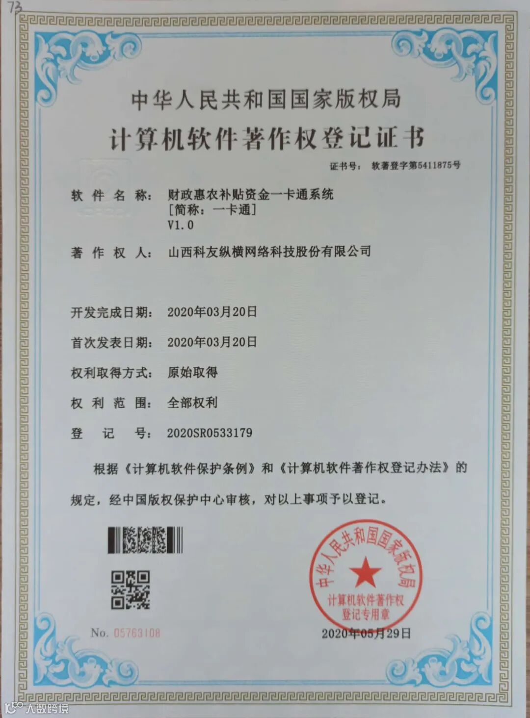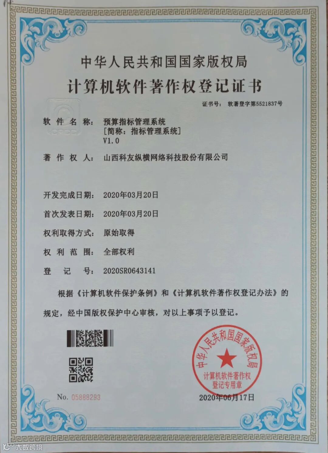 公司经过多年的努力,自主研发多款产品,获得十余项软件著作权,分别为客户关系管理系统V1.0、公务消费监管系统V1.0、民生资金监管系统V1.0、大宗物料计量监督信息系统V1.0、人大联网监督系统V1.0、售后维护中心管理系统V1.0、预算绩效管理信息系统V1.0、医院管理信息系统V1.0、预算指标管理系统【简称:指标管理系统】V1.0、财政惠农补贴资金一卡通系统【简称:一卡通】V1.0等,2019年获得5项,2020年2项。