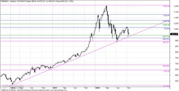 从周线来看,上周越南指数窄幅波动(30点)并下调1.2%。该指数仍处于自从2016年初以来的长期上升走势线上方但短期内将进入下行通道并潜在风险。