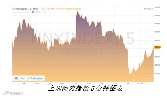 胡志明交易所,日均成交量只达1.274亿股,与前一周下降41.25%。河内交易所,日均成交量也下降38%,达3555万股。