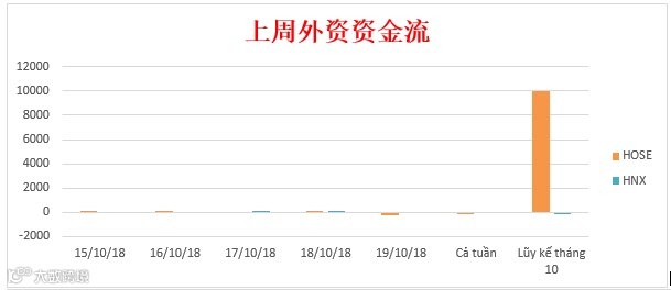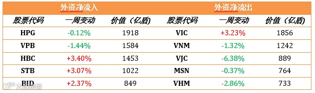 在胡志明交易所,外国投资者净流出近1320亿盾。主力净流出VIC, VNM, VJC,反之,强劲净流入HPG, VPB 和 HBC,净流入总值为5000亿盾。