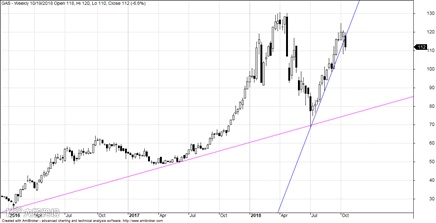 上周末GAS已确认结束了从2018年7月7万盾价区涨至10月份125,000盾价区的上升浪,甚至是从2016年初至今的长期上升浪可能将结束。目前阶段GAS潜在风险。