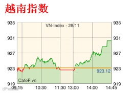 11月28日越南股市开盘横盘波动,随后上涨但涨幅较窄。下午市场放量上涨并保持到尾盘。