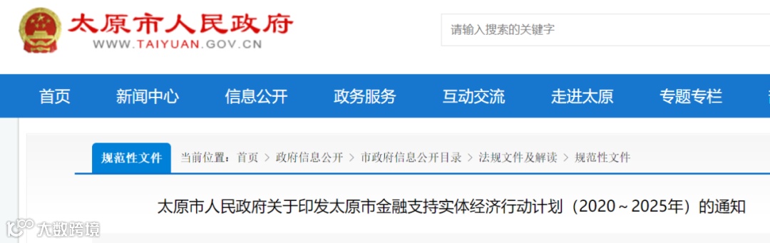 导读:今年3月太原市政府出台了《大原市金融支持实体经济行动计划(2020~2025年)》(并政发[2020]6号)