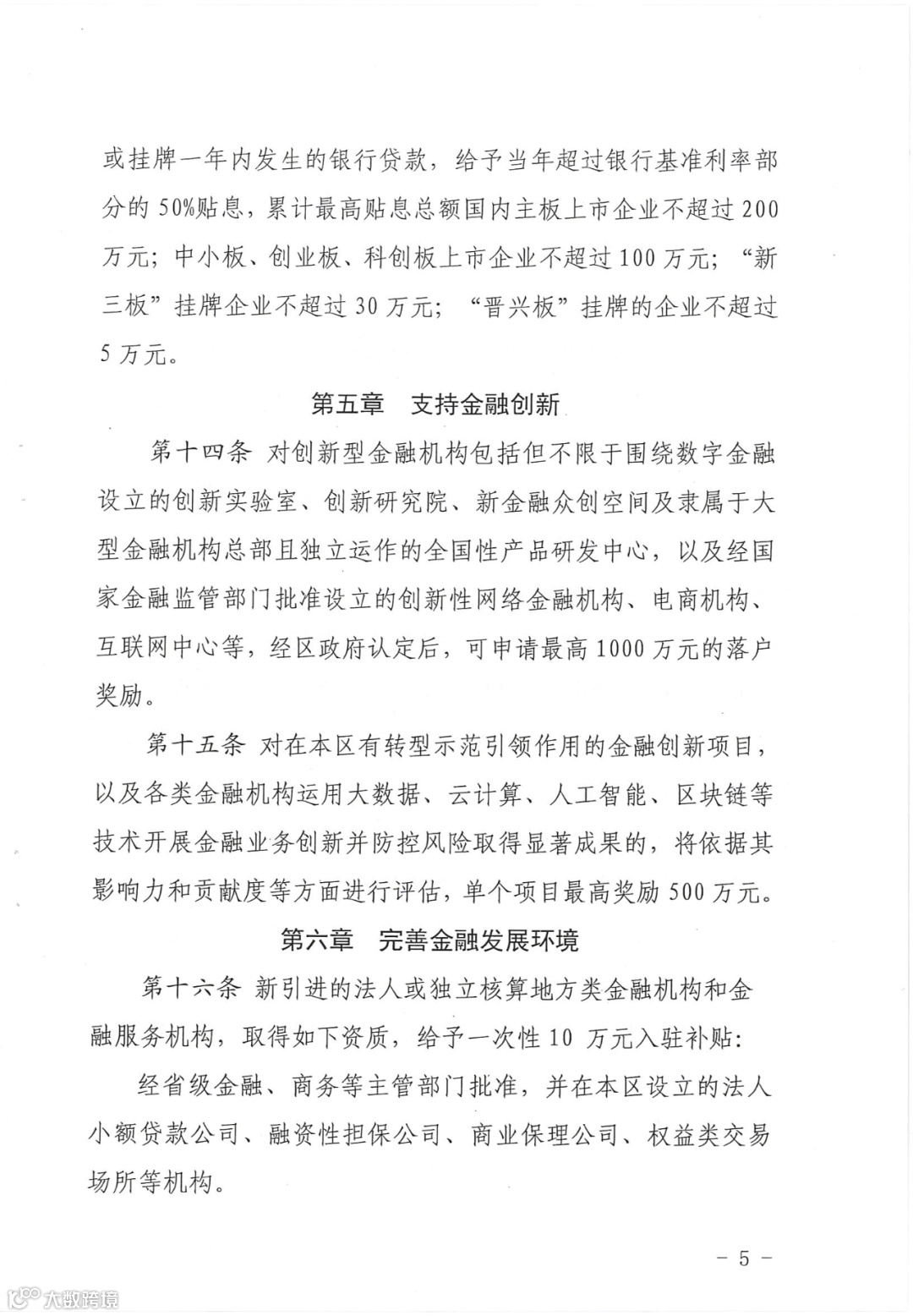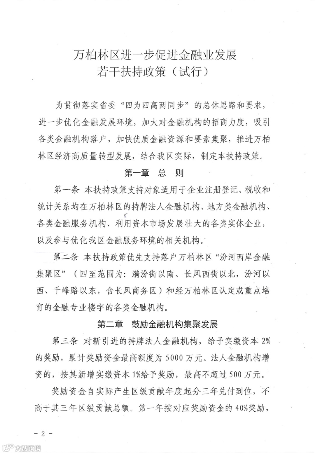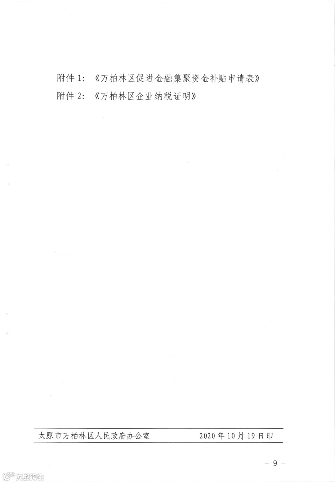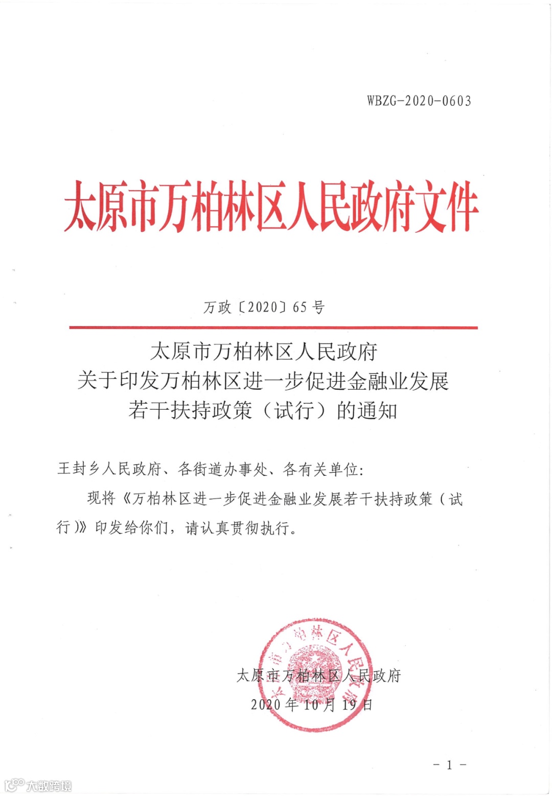 太原市万柏林区人民政府 关于印发万柏林区进一步促进金融业发展若干扶持政策(试行)的通知