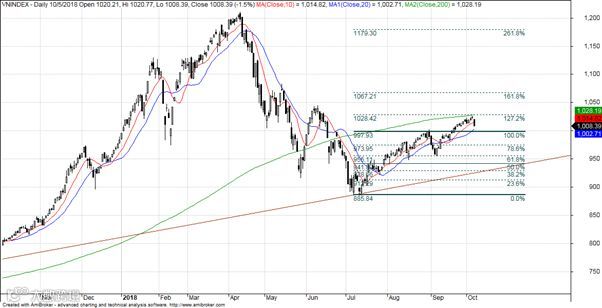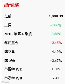 上周初越南指数连续三天上涨,特别盘中冲破1024点。然而,周末卖压较大使得市场大幅下跌至1008.39点(跌幅0.9%)。