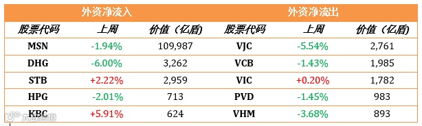 上周银行股(军队银行MBB,技商银行TCB,西贡商信银行STB)帮助银行板块上涨1.92%发挥关键作用。越资证券VCI等证券股和Vin集团,康田地产等房地产板块也积极上涨。