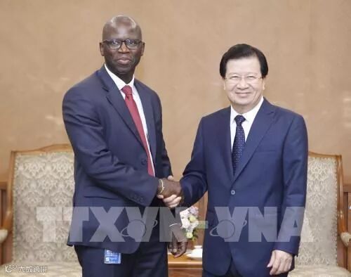 越南政府副总理郑廷勇(右)会见世行驻越首席代表奥斯曼·迪奥。越通社记者 林卿 摄