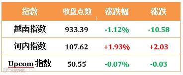 尽管亚洲银行ACB,越南投资发展银行 BID,工商银行CTG, 军队银行MBB, 盛旺银行VPB 等银行股以及胡志明证券HCM, 西贡证券SSI, VNDIRECT证券VND,西贡河内证券 SHS,军队银行证券 MBS 等证券股良好复苏但因尾盘西贡啤酒SAB, 越捷航空VJC被抛售,甚至SAB跌停使得越南指数收盘下跌10.58点。