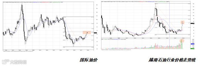 对于越南石油天然气行业,一些龙头股如PVD, PVS, PVB下跌预示着该板块复苏终结。但我们认为,对于公司经营活动不取决于油价涨势的一些股票如PVS,PVB在2018年仍有增长潜力。现在买入时间还早但2018年投资者可以跟踪关注石油板块。该行业的走势线仍呈现积极迹象,虽然股价有所调整但仍有上涨空间。这体现在近期石油板块吸引资金流入,最近几个月个股成交量扩大。