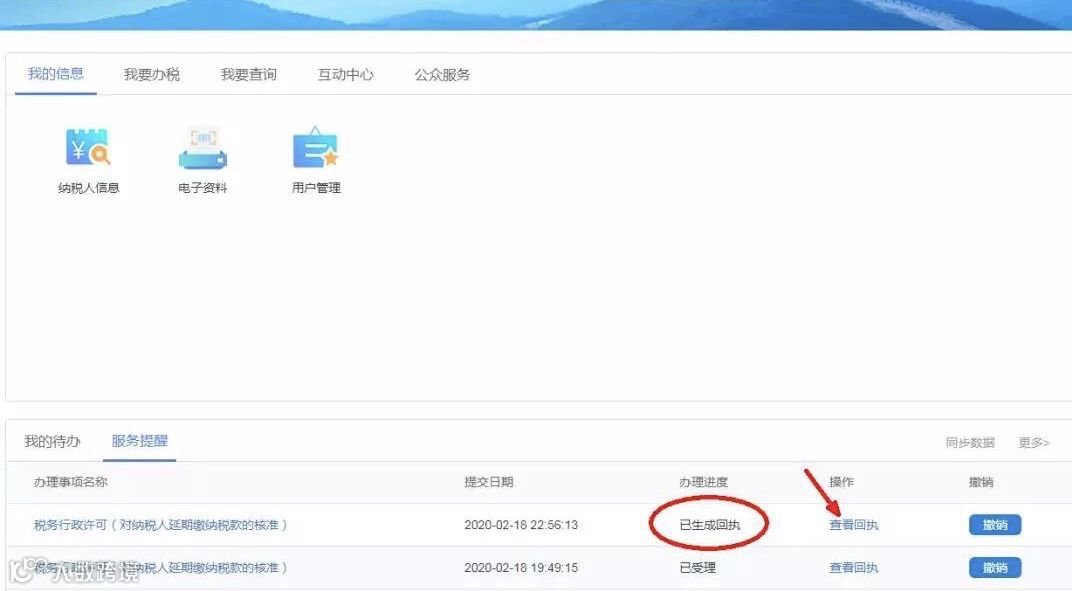如果提交的资料无误并符合该涉税事项的申请资格,当税务机关审核通过后,即可通过【服务提醒】查看到该涉税事项的办税进度及回执下载。