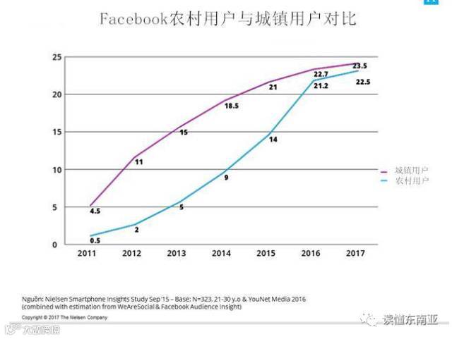 同樣根據調查,在城鎮地區Facebook 用戶達2350萬的同時農村地區Facebook用戶就高達2250萬。