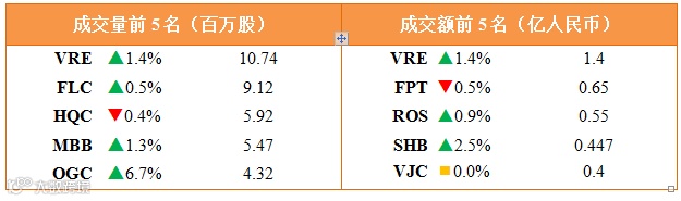 Vin集团VIC,Vincom零售VRE,越南乳业VNM,越南天然气GAS,越南外商银行VCB,越南石油PLX等大盘股上涨拉升指数。反之,和发集团HPG,Novaland地产,越南盛旺银行...下跌。