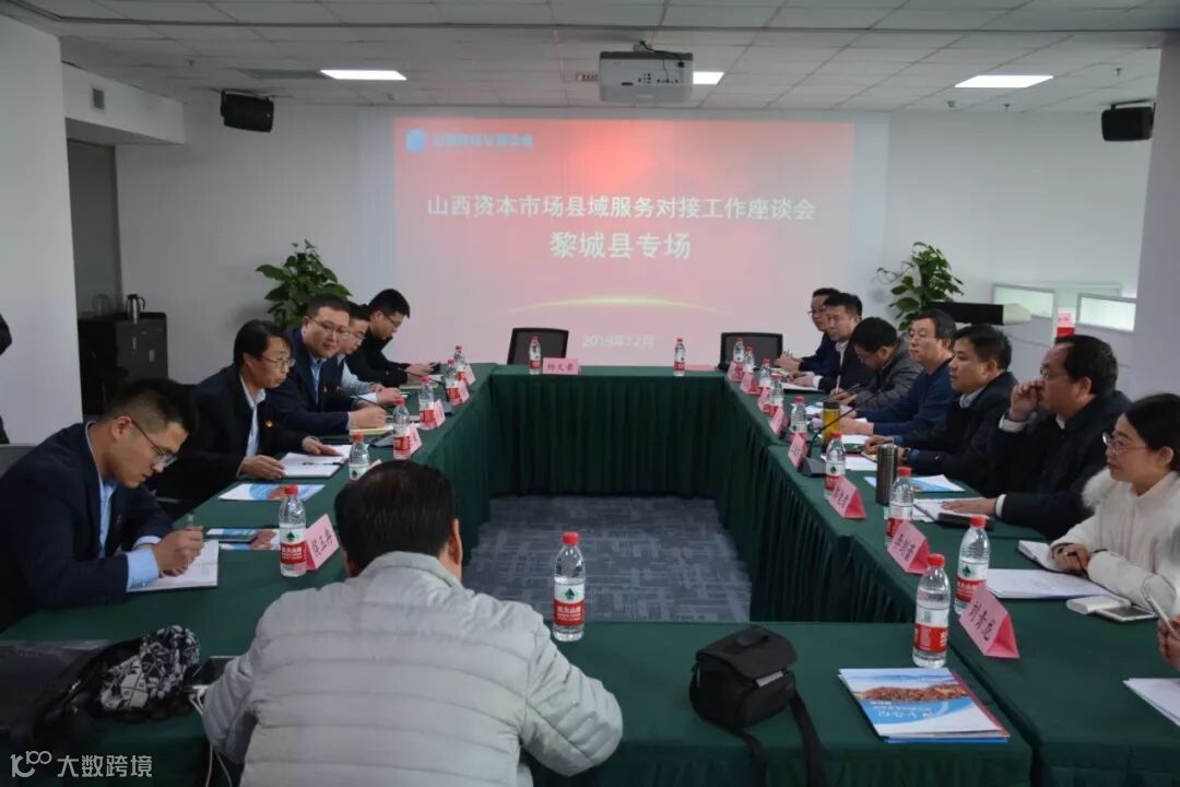 2019年12月11日,山西资本市场县域工程服务对接工作座谈会——黎城县专场在中心1806会议室举行。黎城县人民政府、县金融办、中心企业服务中心、黎城农村商业银行股份有限公司、山西省产业基金管理有限公司及黎城县优秀企业家代表出席本次座谈会。