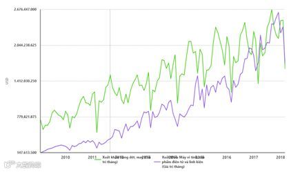 自2010年以来,越南电子,纺织和服装等主要商品的出口额稳步增长
