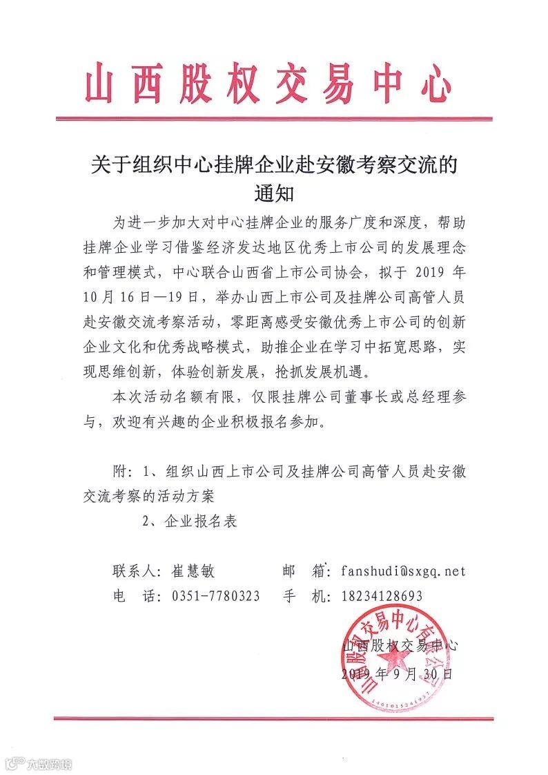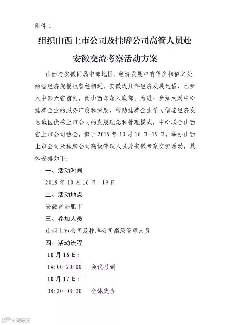 关于组织中心挂牌企业赴安徽考察交流的通知