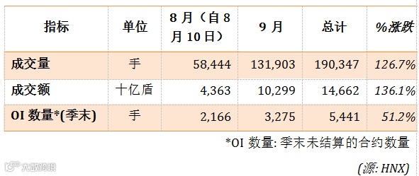 据河内证交所HNX统计数据,自2017年8月10日首个交易日至9月底衍生合约交易量19万手,相当于146,620亿盾。