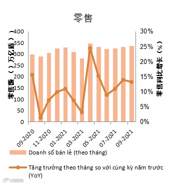 剩余的两个因素中,消费领域继续保持稳定,零售额保持良好势头,同比增长10.5%。