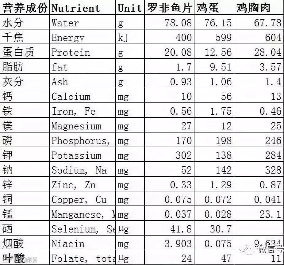 不同禽肉鱼类100g营养对比表 数据来源:美国农业部网站