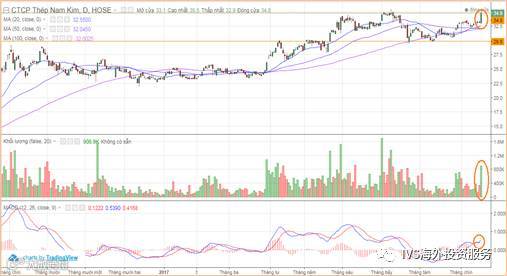 与此同时,成交量放大至90万股。观察周线,自去年4月初NKG仍处于上涨趋势,MACD自下而上交叉信号线。因此,明天交易日该股票可能将冲破前期顶位34,700盾。IVS建议中期投资者买入该股票,目标价5万盾,止损价32,000盾。