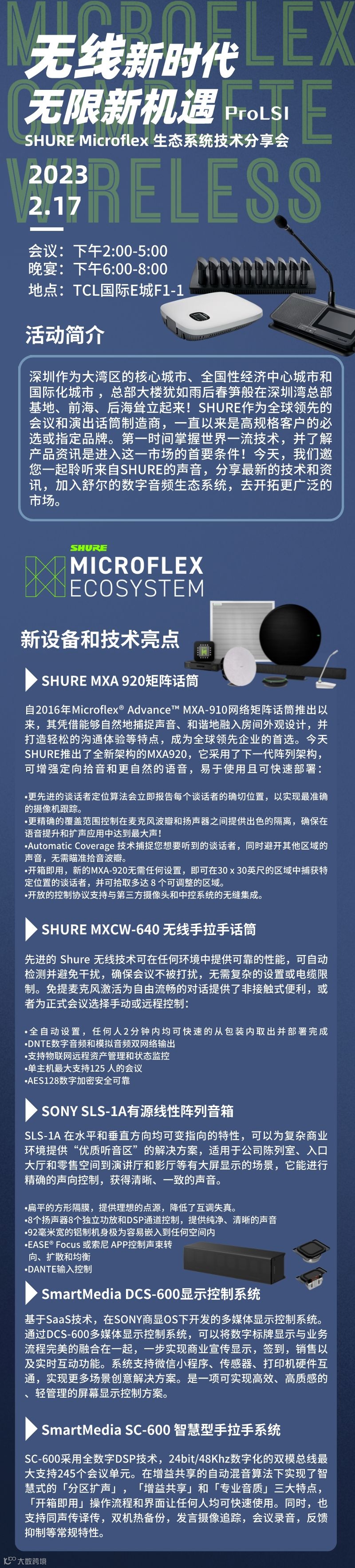 SHURE(舒尔会议),SONY(商显和专业音频)、MEDIALON(声光电控制) ,SmartMedia(斯脉聪)会议系统等产品独家代理。