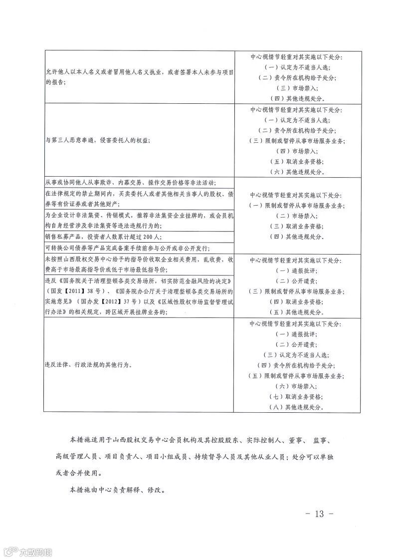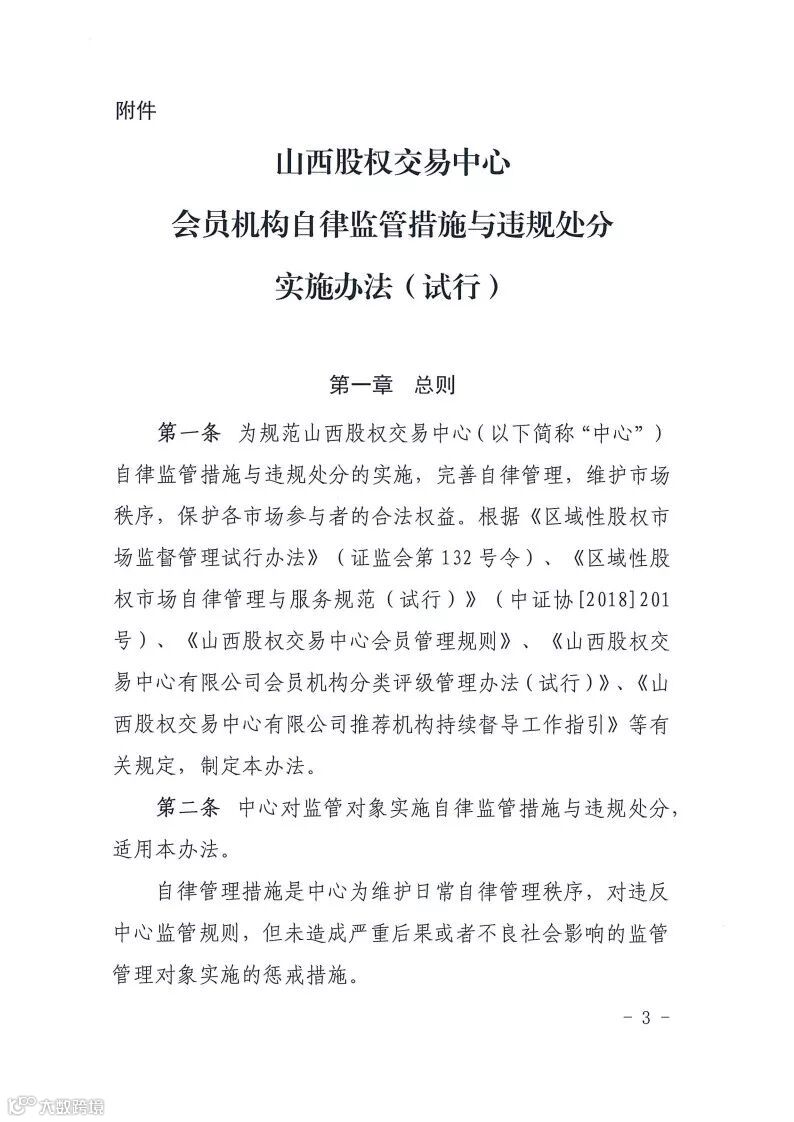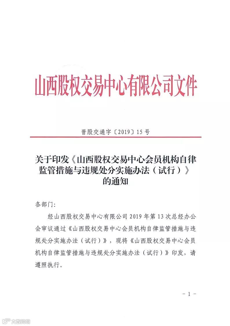 关于印发《山西股权交易中心会员机构自律监管措施与违规处分实施办法(试行)》的通知