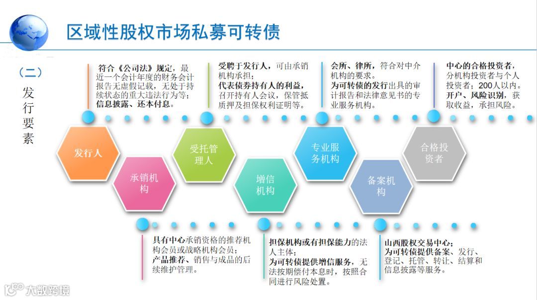 2017年1月26号,国务院办公厅发布《国务院办公厅关于规范发展区域性股权市场的通知》,其中明确提到企业在区域性股权市场可以非公开发行或转让可转换为股票的公司债券。通知的出台标志着区域性股权交易市场,已与银行间债券市场、交易所市场形成了中国债券市场新格局。2017年7月1日,证监会发布的《区域性股权市场监督管理试行办法》正式施行,进一步明确了企业在区域性股权市场发行可转债的要求以及对合格投资者的界定。2018年3月我中心按照监管要求,修订并发布了《山西股权交易中心有限公司非公开发行可转换为股票的公司债券业务规则(试行)》。