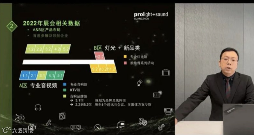 深耕行业二十载,2022广州国际专业灯光、音响展在行业调整、变革、升级的当下坚持与广大业界同仁并肩前行。在发布会上,法兰克福展览有限公司展会经理柯迪先生对本届广州展的筹备情况以及一系列新举措、新活动进行了详细介绍。针对明年的展会,主办单位把握业内发展趋势,进一步根据产品类别优化展厅布局,届时,超过1000家参展企业将在14个展厅内盛大亮相。