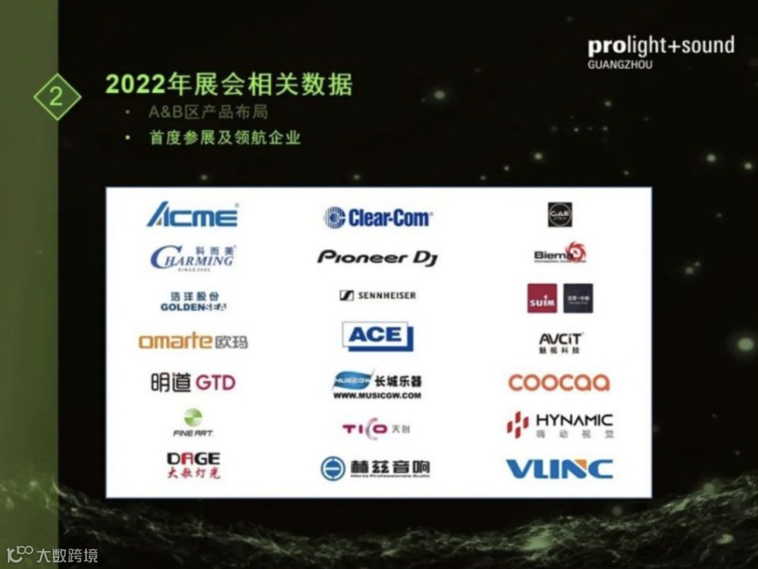 明年,Clearcom、 先锋Pioneer、 森海塞尔Sennheiser都各自以厂商的身份直接参展,安恒利、长秦城、天创集团、赫兹、鼎泰丰、威能士达等,以及来自通讯及视频领域的谷睿、魅视、酷开、嗨动视觉、威林视讯等优秀企业都将迎来在广州展.上的首秀。而展馆B区将继续成为专业灯光馆和PLS独角(兽)秀的大本营,毅丰、科尔美、浩洋、欧玛、明道、彩熠、大歌等优秀的灯光企业也将悉数亮相。