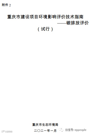 重庆市生态环境局关于印发《重庆市规划环境影响评价技术指南——碳排放评价(试行)》《重庆市建设项目环境影响评价技术指南——碳排放评价(试行)》的通知