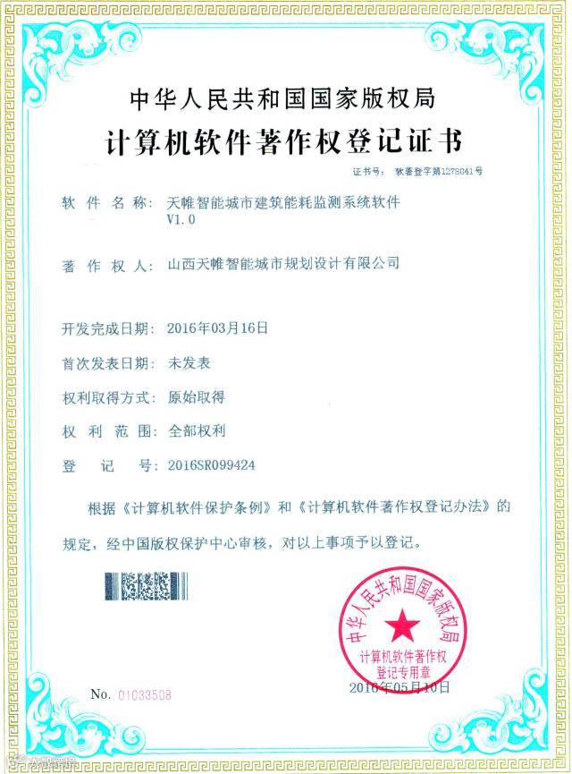 2016年软件著作权“天帷智能城市建筑能耗监测系统软件