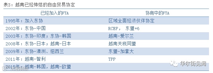 第三,越南加入世贸后,近年来又陆续与欧美国家签订了多项自贸协定,例如越南-欧盟自贸协定,在投资、贸易方面享有很多互惠待遇。相对于中国来说,越南在国际贸易、市场销售方面的限制较少。这使得越南出产的货品不需交纳某些关税,一定程度上鼓励外商投资越南。