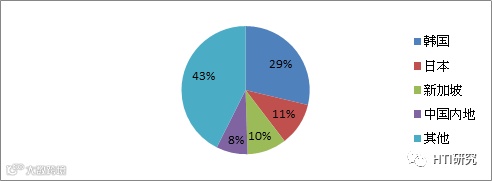 由于文化、地理等原因,以韩国、日本为首的东亚国家是越南FDI的主要来源地。目前,越南最大的外资来源为韩国,其次为日本、新加坡、中国内地。2016年,韩国的投资额约为70.36亿美元,占所有外来投资总额的29%;而日本、新加坡、中国分别占11%,10%,8%(见图4)。 香港是其第六大FDI来源地,2016年的总投资金额约为16亿美元。