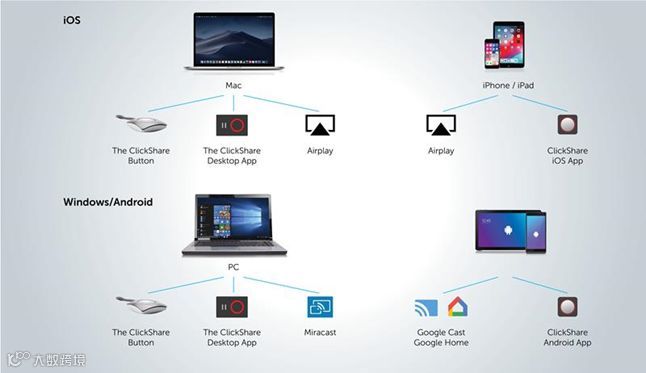 • 免费下载并安装(clickshare.app),无需管理员权限。确保可立享主机已安装了固件1.7版本,以便使桌面App获得最佳体验。